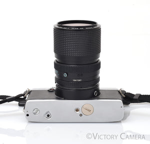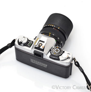 It is in excellent- condition with light wear and works perfectly. The shutter and meter are accurate and everything works perfectly. The light seals are in good condition. The glass is clean and scratch-free with no haze, fungus, nor other issues. The focus is smooth and the aperture is dry and snappy.