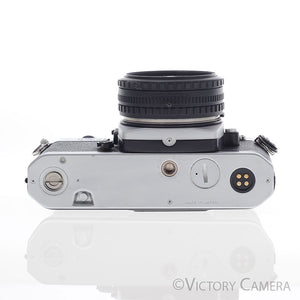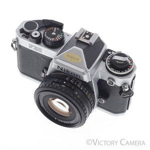 It is in excellent+ condition with light wear and works perfectly. The shutter and meter are accurate. Our technician has replaced the light seals, a $75 value. It comes ready to shoot with the excellent E-Series 50mm f1.8 AI-s prime lens. The glass is clean and scratch-free with no haze, fungus, nor other issues. The focus is smooth and the aperture is dry and snappy.
