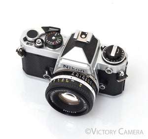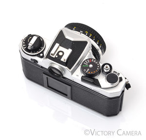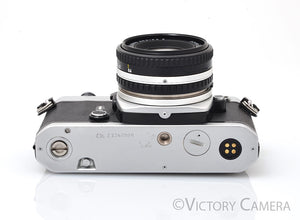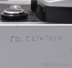 This camera is in excellent condition with little cosmetic wear. There is a small engraving on the bottom plate (see photos) but it is only cosmetic. The shutter is strong and accurate. The meter is accurate. The lens glass is clean and scratch-free with an aperture that is dry and snappy. The focus is smooth. Our technician has replaced the light seals, a $75 value.