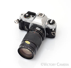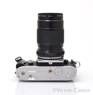 It is in excellent- condition with light wear and works perfectly. There is some minor cosmetic wear on top of the prism (see photos) but it does not affect the function of the camera. The shutter and meter are accurate and the mechanical functions are smooth. The lens is clean and scratch-free with no haze, fungus or other problems. The focus and zoom are smooth and the aperture is dry and snappy.