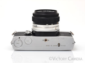 It is in excellent condition with light wear and works perfectly. The shutter and meter are accurate and everything works perfectly. The camera comes with the excellent 50mm f1.8 lens. The glass is scratch free with no haze, fungus, nor other issues. There is some wear on the focus ring of the lens, but this is purely cosmetic, and does not affect the image quality nor function of the lens. We have replaced the light seals (a $75 value).