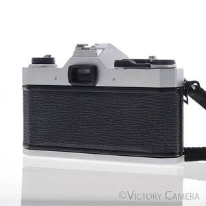 It is in excellent condition with light wear and works perfectly. There is a very slight line in the finder (common in these) but it is only barely visible while in use, and it does not affect image quality or the function of the camera. The shutter and meter are accurate and the mechanical functions are smooth. Our technician has replaced the light seals, a $75 value. The lens is clean and scratch-free with no haze, fungus, nor other issues. The focus has that Pentax smoothness and the aperture is dry and snappy.