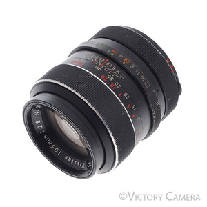 It is in excellent- condition with light wear and works perfectly. The glass is clean and scratch-free with no haze, fungus, nor other issues. The focus is smooth, and the aperture is dry and snappy.