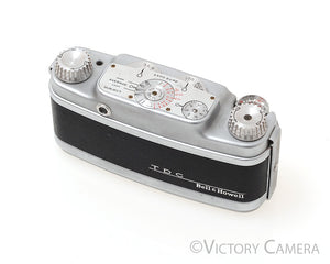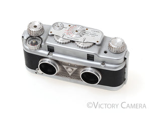 It is in excellent condition with light wear and works perfectly. The shutter is strong and accurate at all speeds and the mechanical movements are smooth. The vertical alignment on the rangefinder is off, but the horizontal is accurate. The lenses are clean and scratch-free with no haze, fungus, nor other issues. The focus and aperture are smooth.