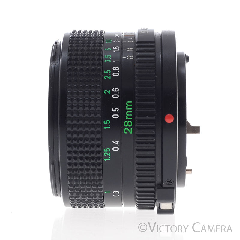 This is the late version high-quality wide angle for Canon manual focus cameras and digitals with adapters. It is very small and has excellent image quality.