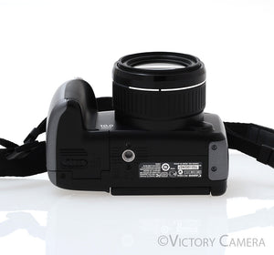 It is in excellent condition with light wear and works perfectly. The glass is clean and scratch-free with no haze, fungus, nor other issues. The autofocus is accurate and the mechanical functions are smooth. The battery compartment is clean.