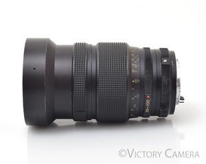 It is in good condition with moderate wear and works perfectly. There are some marks in the glass and slight haze, but I can only see them with a flashlight. They may soften your images slightly when shooting in harsh conditions. Otherwise, the lens works perfectly. There is no fungus. The focus and zoom are smooth and the aperture is dry and snappy.