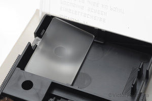 This screen has a circle indicating the center weighted zone and no other markings and no focusing aid. It is in mint condition in the box with the tweezers and brush.