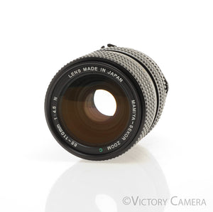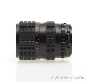 It is in excelelnt condition with light wear and works perfectly. The glass is clean and scratch-free with no haze, fungus, nor other issues. The focus and zoom are smooth and the aperture is dry and snappy.