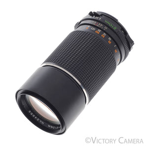 It is in excellent+ condition with light wear and works perfectly. The glass is clean and scratch free with no haze, fungus, nor other issues. The focus is smooth and the aperture is dry and snappy.