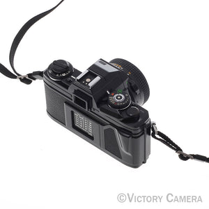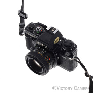 This is an easy-to-use camera with manual and automatic exposure and full auto program mode. It comes ready to shoot with a Minolta 50mm f1.7 prime lens.