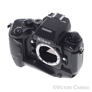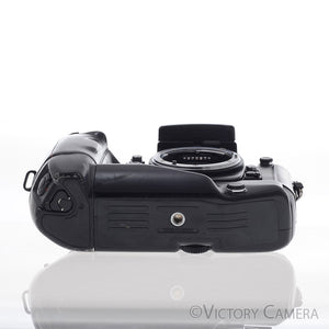 It is in excellent condition with some light cosmetic wear and works perfectly. There is a tiny amount of bleed in the upper right of the lower LCD (common in these) but it does not obscure the information on the screen. The battery compartment of the MB-21 shows use, but it does not affect the performance of the camera. The aperture arm works perfectly (commonly an issue in these), and the shutter and meter are accurate.
