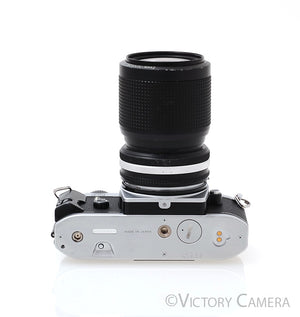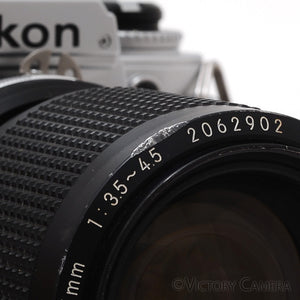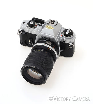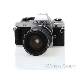 This is the compact FG camera, the smallest Nikon 35mm SLR with shutter control. It is small, light, and great for travel. It comes ready to shoot with a versatile Nikon 35-105mm f3.5-4.5 zoom lens.