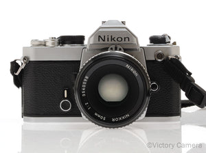 Nikon FM Chrome 35mm Film Camera w/ 50mm f2 AI Lens [EXC]