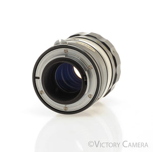 It is in good condition with light wear and works perfectly. There is some haze behind the front element of the lens, but otherwise the glass is clean and scratch-free with no haze, fungus, nor other issues. The focus is smooth.