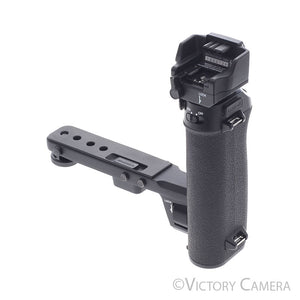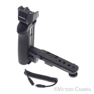 The Olympus FP-1 Flash Power Grip allows the FL-50 electronic flash to be used as a grip-on type flash powered from 4 'C' (R-14) alkaline dry cell batteries. The power from the grip can be combined with the flash's own batteries in order to charge the FL-50 at a higher speed and increase the available flash emission count. It can also be used as a grip when using the SHV-1 Flash High Voltage Set.