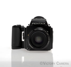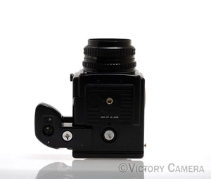 It comes complete with 75mm f2.8 standard lens and converted 120 back. Ready to shoot!