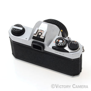 The camera is in excellent condition with light wear and works perfectly. The shutter and meter are accurate and the mechanical functions are smooth. Our technician has replaced the light seals, a $75 value. The lens is clean and scratch-free with no haze, fungus, nor other issues. The focus has that Pentax smoothness and the aperture is dry and snappy.