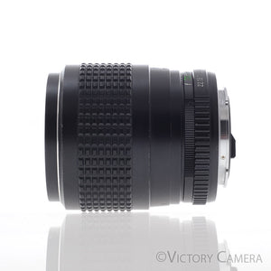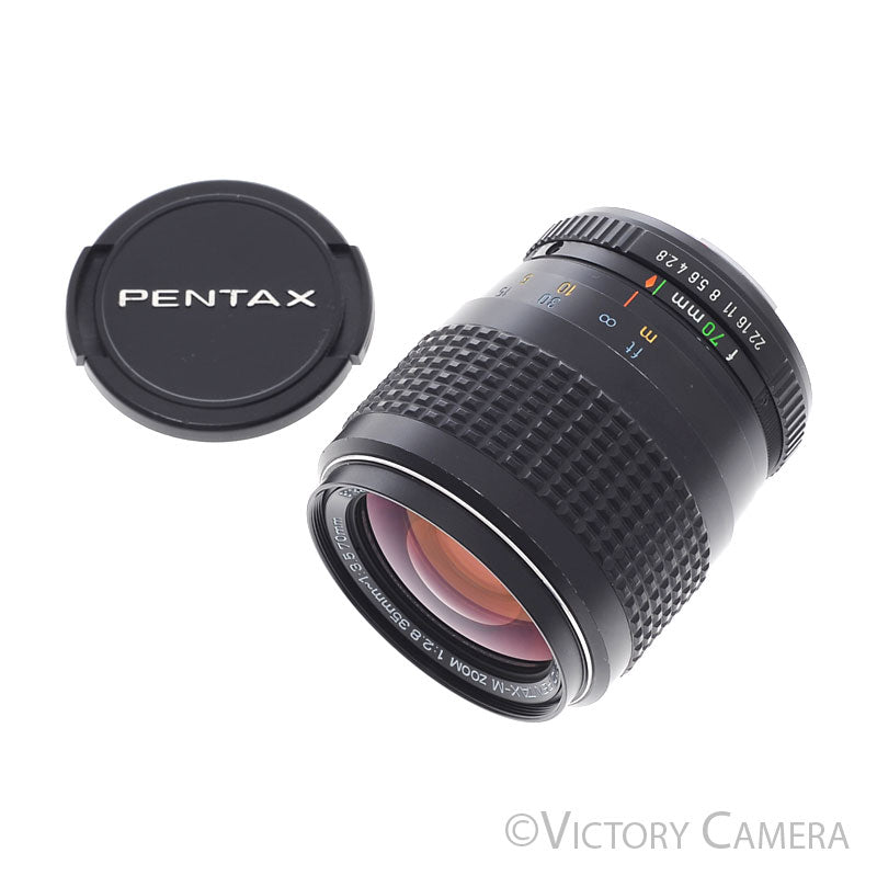 It is in excellent condition with light wear and works perfectly. The glass is clean and scratch-free with no haze, fungus, nor other issues. The focus has that Pentax smoothness and the aperture is dry and snappy. The zoom is smooth.