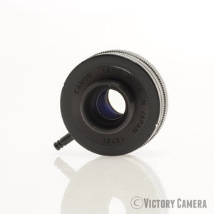 This is a rare lens for extreme macro. It does not have any built-in focusing and mounts on a Canon FD (manual focus) bellows. You could also put it on another macro rig with an FD adapter (this would be great for shooting bugs on mirrorless).