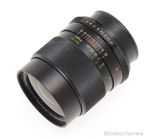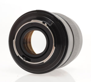It is in excellent- condition with light wear and works perfectly. The glass is clean and scratch-free with no haze, fungus, nor other issues. The focus is smooth and the aperture is dry and snappy.