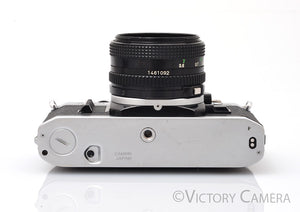 It is in excellent condition with light wear, everything works perfectly. The shutter and meter are accurate. The mechanical functions are smooth. There is no shutter squeak. Our technician has replaced the light seals, a $75 value. The lens is clean and scratch-free with no haze, fungus, nor other issues. The focus is smooth and the aperture is dry and snappy.