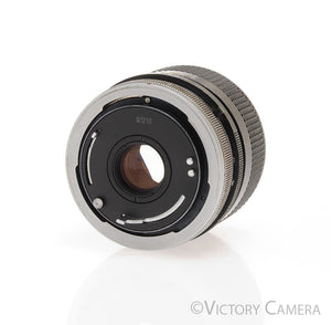 It is in good condition with moderate cosmetic wear and works perfectly. The glass is clean and scratch-free with no haze, fungus, nor other issues. The focus is smooth and the aperture is dry and snappy.
