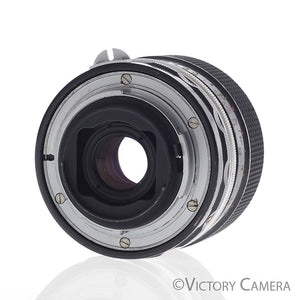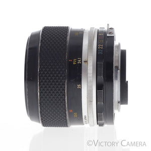 It is in excellent- condition with some light cosmetic wear and works perfectly. The glass is clean and scratch-free with no haze, fungus, nor other issues. The focus is smooth and the aperture is dry and snappy.