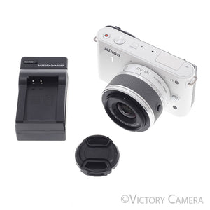 This is a beautiful mirrorless camera made by Nikon that could easily fit into your bag for day to day use. It is well built with a nice white finish that looks very clean. It comes ready to shoot with the 1 Nikkor 10-30mm f3.5-5.6 kit lens.