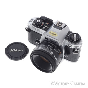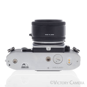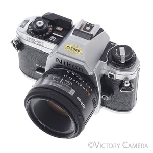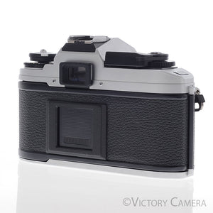 It is in excellent condition with light wear and works perfectly. The shutter and meter are accurate and the mechanical functions are smooth. The battery compartment is clean. We have replaced the light seals (a $75 value). The glass is clean and scratch-free with no haze, fungus, nor other issues. The focus is smooth and the aperture is dry and snappy.