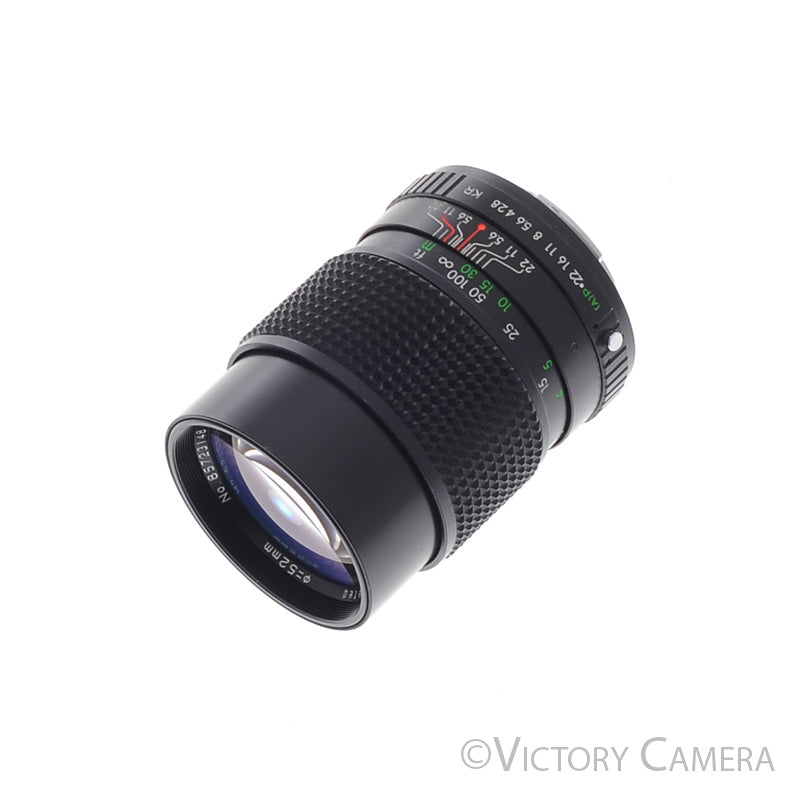 It is in excellent condition with light wear and works perfectly. The glass is clean and scratch-free with no haze, fungus, nor other issues. The focus is smooth and the aperture is dry and snappy.