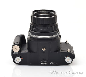 This camera is in excellent+ condition and works perfectly. There is very light wear. The lens is clean and scratch-free with no haze, yellowing or fungus. The aperture is dry and snappy and the focus has that Pentax smoothness.
