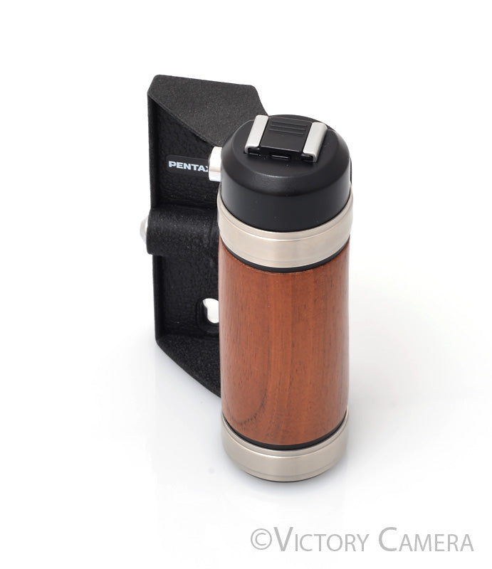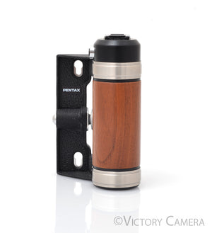 This is the left hand grip for the Pentax 67II and other Pentax 6x7 cameras. This is the version with the integrated accessory shoe for the 67II. It gives a very solid grip and makes the camera much easier to handhold.