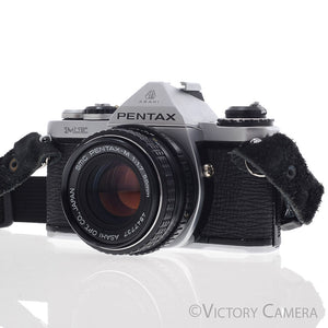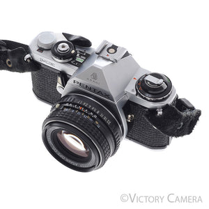 It comes with the Pentax-M 50mm F1.7 lens. The lens has clean scratch-free glass and smooth focusing. We have replaced the light seals, a $75 value.