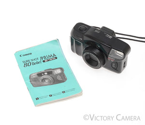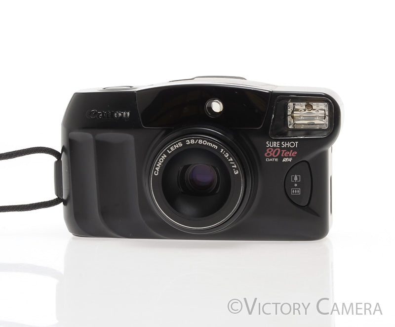 Here's a nice point-and-shoot film camera made by Canon with a 38-80mm zoom lens. It would be an excellent camera to carry with you for travel or for day-to-day photography.