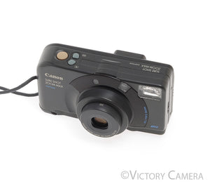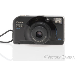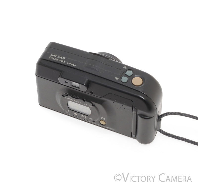 This model specifically has the option to print the date, and captions on your photos! The Sure Shot models with the caption function are particularly hard to find, and they add a little fun to your every day point and shoot carry. It is in excellent- condition with light wear and works perfectly. There is a small crack by the battery door, but it is purely cosmetic and does not affect the image quality nor the function of the camera. The shutter and meter are accurate. The flash is strong and the battery compartment is clean. The glass is clean and scratch-free with no haze, fungus, nor other issues.