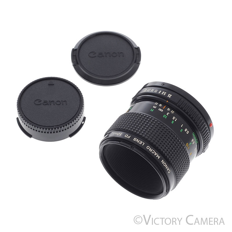 This is the beautiful macro lens for all Canon FD mount cameras. It will focus to 1:2 without accessories. This is a very sharp lens great for macro photography or general use.