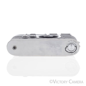 This one just came back from a CLA at YYE Camera. It is in excellent condition with light wear and works perfectly. The rangefinder is bright and accurate and the shutter is strong with no hesitation. The speeds are accurate and the mechanical functions are smooth.