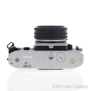 It is in excellent condition with light wear and works perfectly. The shutter and meter are accurate. The battery compartment is clean. Our technician has replaced the light seals, a $75 value. The lens is clean and scratch-free with no haze, fungus, nor other issues. The focus is smooth and the aperture is dry and snappy.