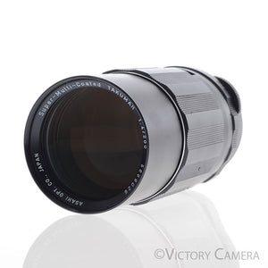 It is in excellent+ condition with light wear and works perfectly. The glass is clean and scratch-free with no haze, fungus, nor other issues. The focus has that Pentax smoothness and the aperture is dry and snappy.