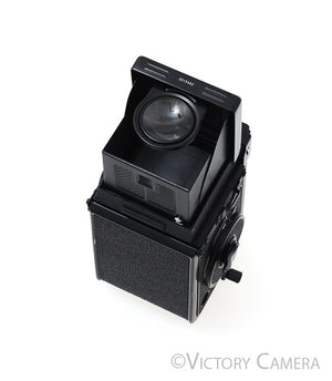 This camera is in excellent+ condition and works perfectly. The meter works. The shutter is strong and accurate and the glass is clean and scratch-free. The body is in great cosmetic condition and the vinyl is not curled. This one is a real beauty. The meter is accurate. Our technician has replaced the light seals, a $75 value.