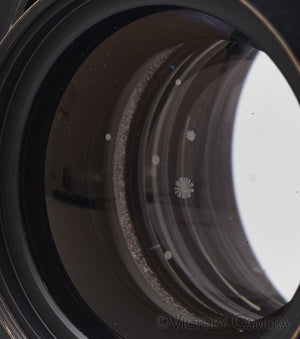 It is in good condition with moderate wear. There are a few "stars" of seperation in the rear element group (see photos) that may soften your images slightly when shooting in harsh conditions. There also seems to be a hairline scratch on an inner element in the front group. Otherwise, the glass is clean with no haze, fungus, nor other issues. The shutter is strong and accurate at all speeds. The mechanical functions are smooth.