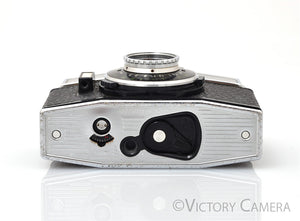 It is in excellent- condition with light wear and works perfectly. The shot counter is slightly off, but otherwise the shutter is working well and the glass is clean and scratch free.
