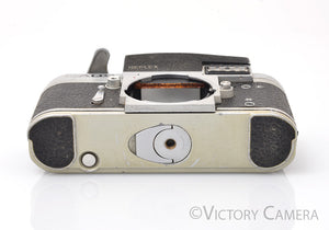 This one is in excellent- condition with some light cosmetic wear. The light meter does not work (a frequent problem with these) but everything else functions perfectly. The shutter is strong and accurate at all speeds. The mechanical functions are smooth. The shutter is in excellent condition with no pinholes.