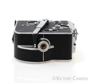 This is the Bolex H16, a super cool 16mm motion picture film camera. It is beautifully designed with a rotating lens mount for quick lens changes in the field. I used the H16 for projects in film school, it is a fantastic camera.