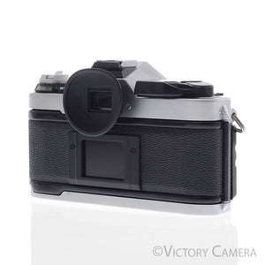 It is in excellent condition with light wear and works perfectly. The shutter and meter are accurate and the mechanical functions are smooth. There is no shutter squeak. Our technician has replaced the light seals, a $75 value. The lens is clean and scratch free with no haze, fungus, nor other issues. The focus is smooth and the aperture is dry and snappy.