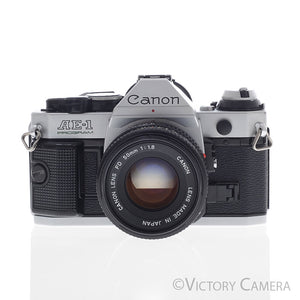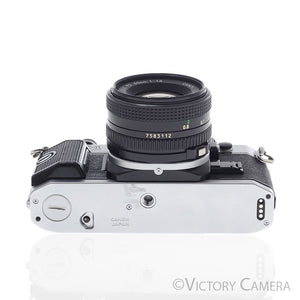 Here is a nice Canon 35mm film SLR camera with the standard 50mm f1.8 lens. It is compatible with all Canon FD lenses. It has a full range of manual settings allowing individuals to dive straight into the realm of shutter speeds, ISO, manual focus, and aperture settings as well as a few auto modes for fast shooting.