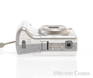 This is a nice digital point and shoot camera made by Canon. It conveniently runs on AA batteries!
