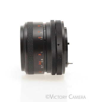 It is in excellent condition with light wear and works perfectly. The glass is clean and scratch-free with no haze, fungus, nor other issues. The focus is smooth and the aperture is dry and snappy.