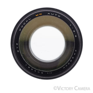 This is a telelphoto prime lens with a relatively fast maximum aperture for Minolta manual focus film cameras.